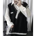 ベスト ジレ クレイジーパターン プレッピー Vネック ニットベスト メンズ
