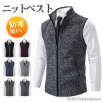 ニットベスト メンズ ビジネスベスト 立ち襟 チョッキ オフィス ノースリーブ アウトドア 防寒 暖かい 通勤 柔らかい 上品 体型カバー 無地