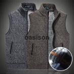 秋冬用 ベストメンズ 無地スタンドカラー 裏起毛 ニットベスト セーター 厚手 チョッキ ビジネスカジュアル 紳士服 ジップアップ ノースリーブ