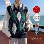 ベスト ジレ クレイジーパターン プレッピー Vネック ニットベスト メンズ