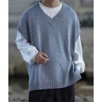 「VELNUS」 Vネックニット L ライトグレー メンズ