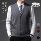 ニットベスト ジレベスト メンズ 無地 ノースリーブ ビジネス 紳士 細身 トップス アウター 男性用 カジュアル オフィス 春秋冬 前開き