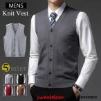 ニットベスト ニットカーディガン メンズ ベスト 前開き ビジネスベストノースリーブ トップス セーター カジュアル おしゃれ 秋物 紳士 シニアファッション