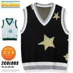 ベスト ニット メンズ レディース Vネック ニットセーター 星柄 ノースリーブ ニットソー トップス ブラック ホワイト 通勤 通学 キレイめ 春 秋