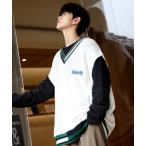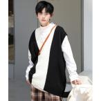 ベスト ジレ 「neos -addictive design-」ルーズシルエット バイカラー Vネック チルデン ニット ベスト メンズ レディース