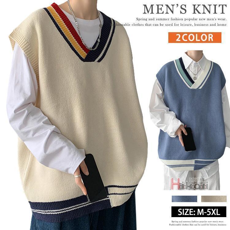 【期間限定10%OFF】ニットベスト メンズ スクールベスト Vネック ベスト 重ね着 プルオーバー セーター 春 無地 ノースリーブ トップス メンズファッション