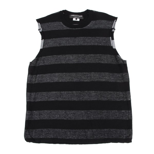 【中古】 コムデギャルソン オムプリュスCOMME des GARCONS HOMME PLUS ボーダーノースリーブニットベスト 黒シルバーL【メンズ】