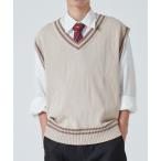 リブニット トップス ベスト ニットベスト メンズ ノースリーブ セーター ライン入り ストリート系 インナー プルオーバー カジュアル レイヤード 重ね着 スクール ニットセーター