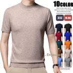 モックネック ニットセーター メンズ半袖 サマーニット サマーセーター tシャツ ニットソー ハイネック ゴルフウェア 半袖ニット 無地 ニット