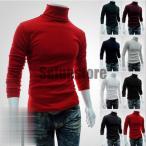 ニット メンズ 無地セーター タートルネック ハイネック ニットソー トップス 長袖セーター 秋冬