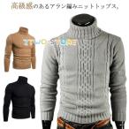 タートルネック ニット メンズ 長袖 セーター アラン編み ハイネック 細身 大きいサイズ ニット トップス 男性 ケーブル編み 春 秋 冬 服