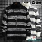 ニット メンズ タートルネック ニットセーター 長袖ニット 秋 秋冬 ボーダー柄 ハイネック セーター ブラック ホワイト 父の日
