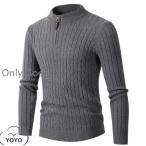 ニットセーター メンズ 裏起毛 ハイネック タートルネック 長袖 ハーフジップ トップス シンプル 無地 秋冬 厚手 おしゃれ