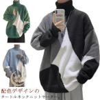 ニット セーター 配色 メンズ タートルネック ニットセーター 秋 冬 メンズニット メンズセーター ハイネック ニット トップス 長袖 オーバーサイ