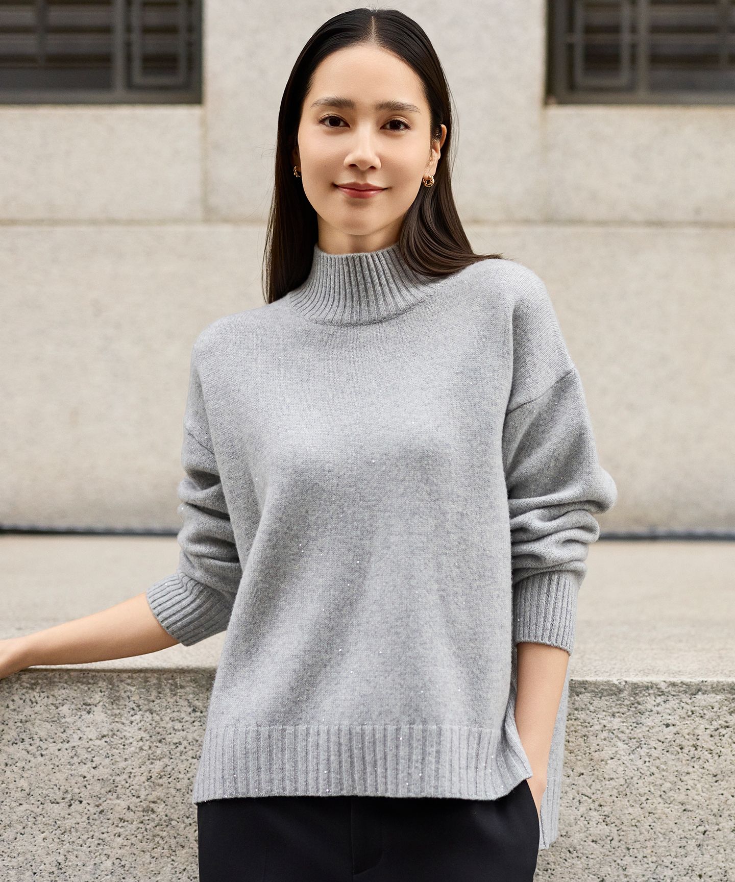 自由区(ジユウク)/ウールカシミヤブレンドスパンコールハイネック ニット