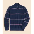 セーター ニット スーピマコットン ピケ ストライプ ハーフジップ モックネックプルオーバー メンズ