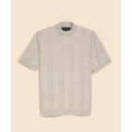 セーター ニット リネン ストライプ モックネック ショートスリーブセーター メンズ