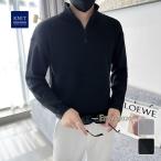 ニット メンズ セーター モックネック ハイネック モックネック 長袖ニットソー 薄手 黒 秋 冬