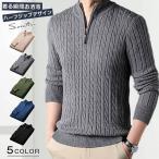 セーター メンズ ハーフジップ ハイネック ケーブルニット カジュアル 無地 長袖 秋冬 暖かい ビジネス 通勤 通学