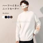 ニット セーター メンズ ハーフジップ ニットセーター ハイネック 立ち襟 無地 長袖 トップス 防寒 暖かい あったか 秋 秋冬