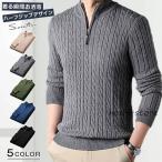 セーター メンズ ハーフジップ ハイネック ケーブルニット 厚手 カジュアル 無地 長袖 秋冬 暖かい ビジネス 通勤