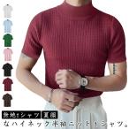 白 ハイネックtシャツ モックネック ハイネック 細身 ハイネック 無地tシャツ 夏 半袖 Tシャツ トップス ダイエット 黒 サマーニット タイト