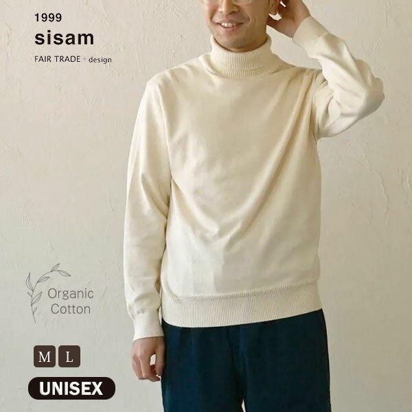 sisam オーガニックコットン ユニセックス タートルニットトップ | オーガニック コットン 綿 100% ナチュラル ギフト プレゼント カジュアル 男女兼用 無地 シサム工房 父の日 母の日 ニット 長袖 セーター タートルネック ハイネック 定番 ユニセックス