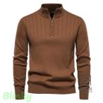 セーター ニット メンズ ハイネック ハーフジップ 綿 黒 コットン おしゃれ ジッパー ニット 防寒着 冬 ブランド ハーフジップセーター ハーフジップ
