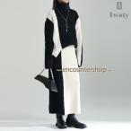 韓国ファッション2点セットハイネックニットセーター+配色スカート