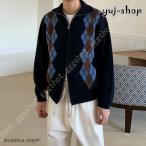 カーディガン メンズ ニット ジャケット アーガイル柄 秋 冬 ストリート アウター ジャケット 大きいサイズ ダブルジップ 暖かい トップス スタンドカラー