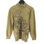 エルメス HERMES 花柄 フラワー 長袖 ニット セーター ハイネック ハーフジップ カシミヤ S ベージュ系 イタリア製 メンズ