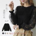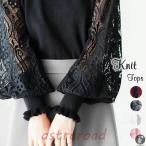 ニット セーター パフスリーブ レーススリーブ ニットソー ラウンドネック 花柄 レディース トップス おしゃれ 可愛い エレガント 上品 秋冬