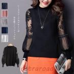 ニット セーター レーススリーブ 花 透け感 レース切り替え ラウンドネック レース袖 レディース トップス おしゃれ 可愛い エレガント 秋冬新作