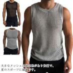 タンクトップ メンズ メッシュタンクトップ ノースリーブ サマーニット 男性 ラウンドネック スポーツ 肌着 下着 インナー 細身
