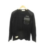 アヴィレックス AVIREX ニットソー カットソー ニット ラウンドネック 長袖 コットン 切替 ロゴ ミリタリー M 黒 ブラック