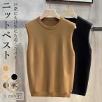 ニットベスト メンズ ジレベスト ラウンドネック ジレ ベスト 30代 丸首 メンズベスト 40代 チョッキ 50代 通勤 ニットベスト クルーネック