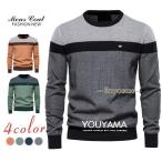 セーター 冬物 秋冬 ニット 冬服 メンズセーター ラウンドネックニット プルオーバー ニットトップス メンズ トップス シンプル バイカラー 厚手
