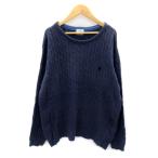 ポロ バイ ラルフローレン Polo by Ralph Lauren ニット セーター ラウンドネック 長袖 刺繍 ウール L オフホワイト ■GY53 メンズ