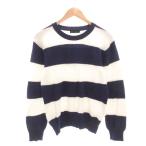 メンズメルローズ MEN'S MELROSE ニット セーター ボーダー柄 ラウンドネック 長袖 3 青 ブルー 白 ホワイト /YJ ■GY59 メンズ