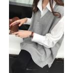 ニット ベスト レディース サイドボタン 重ね着 ニットベスト ノースリーブ ラウンドネック Vネック