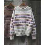 セーター ニット 5G ジャカード ネイティブ ストライプ クルーネック ニット メンズ