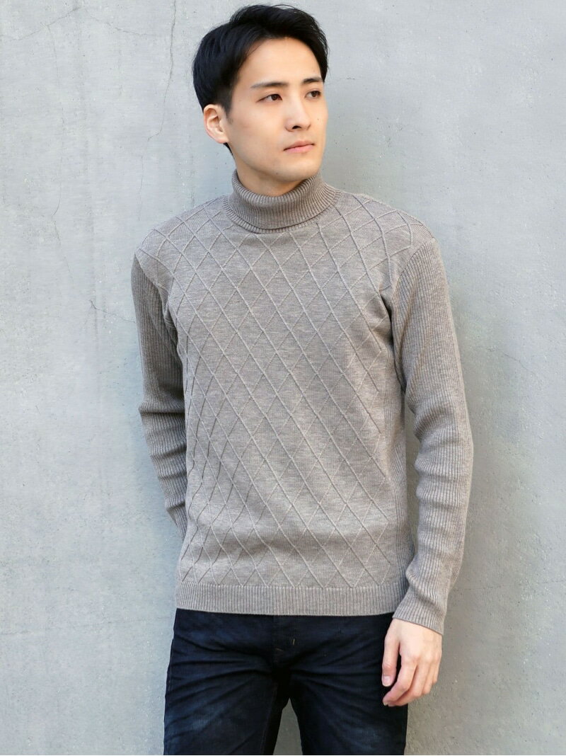 【SALE/50%OFF】HIDEAWAYS NICOLE 12GG アーガイルJQxリブ編みタートルネックニット ニコル トップス ニット ブラウン ブラック ホワイト レッド