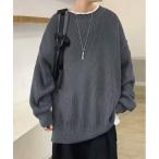 セーター ニット ルーズシルエット アクリル/モールクルーネック長袖ニット メンズ レディース