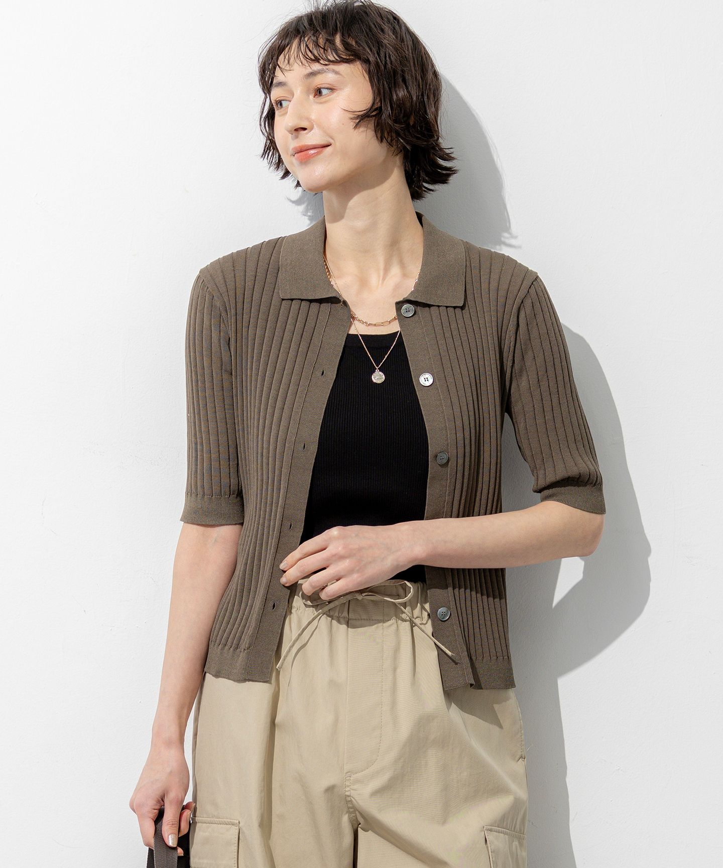 23区 L(ニジュウサンク エル)/ワイドリブ 五分袖 ポロニット