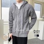 ニットカーディガン メンズ 長袖 ショート丈 立襟 フード付 ファスナー リブ ジャケット アウター 細身 無地 カジュアル おしゃれ ファッション 新作