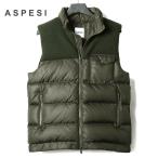 ASPESI / アスペジ 撥水シャイニーナイロン×ウール混リブニット異素材コンビスタンドカラーダウンベスト(4I04/V006) (ミリタリーグリーン基調)