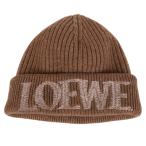 ロエベ LOEWE ロゴ刺繍 ニット帽 ビーニー ニットキャップ リブ 帽子 メンズ レディース ウール ブラウン 茶 F540257X23