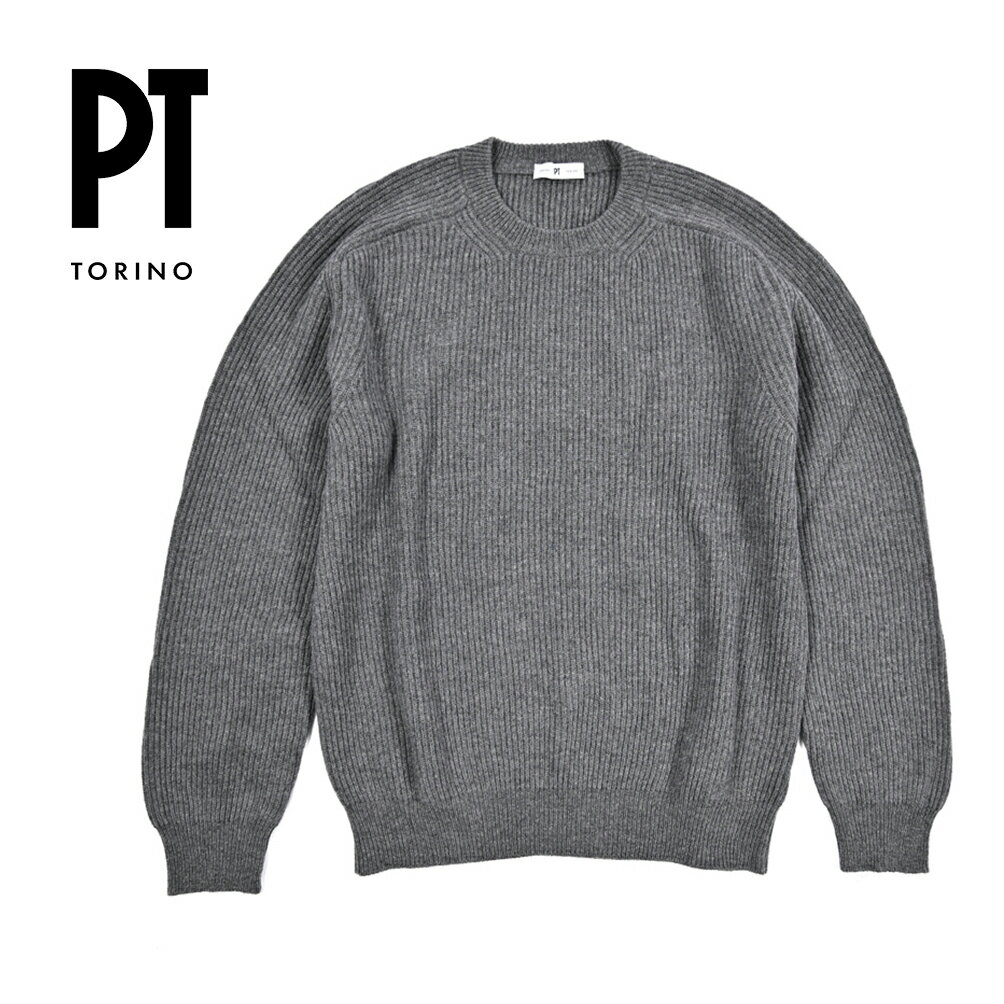 【クリアランス】 ピーティートリノ PT TORINO カシミヤ混 ニットセーター クルーネック リブ編み ミドルゲージ 長袖 秋冬 メンズ ヴァージンウール カシミヤ グレー イタリア ブランド PT01 MADE IN ITALY