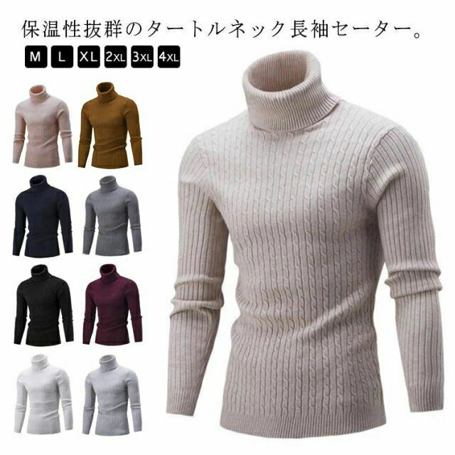 ケーブル編み ニットトップス リブニット メンズ 暖かい セーター ハイネック タートルネック 無地 セーター リブ編み スリム 防寒 秋冬 インナー おしゃれ 大きいサイズ