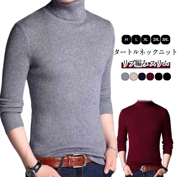 ニット メンズ セーター スリム セーター カジュアル 長袖 秋冬 無地 タートルネック ハイネック ニットセーター タートルニット 防寒 リブ 暖かい リブニット 6色 20代 30代 40代